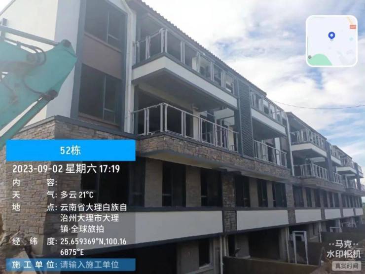 52栋砌体完成100%、内墙抹灰完成100%,外墙抹灰完成100%,屋面防水完成100%;窗安装完成100%;外墙保温砂浆百分100%、抗裂砂浆完成100%,腻子粉完成100%,涂料完成100%;文化石完成85%,小青砖完成85%,屋面瓦施工完成;庭院给排水管未安装,室内给排水、二配安装完成。