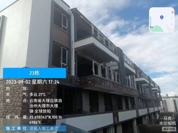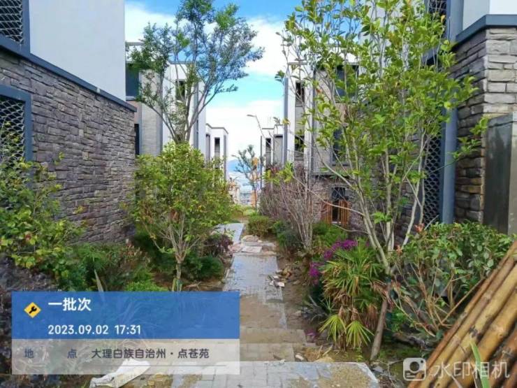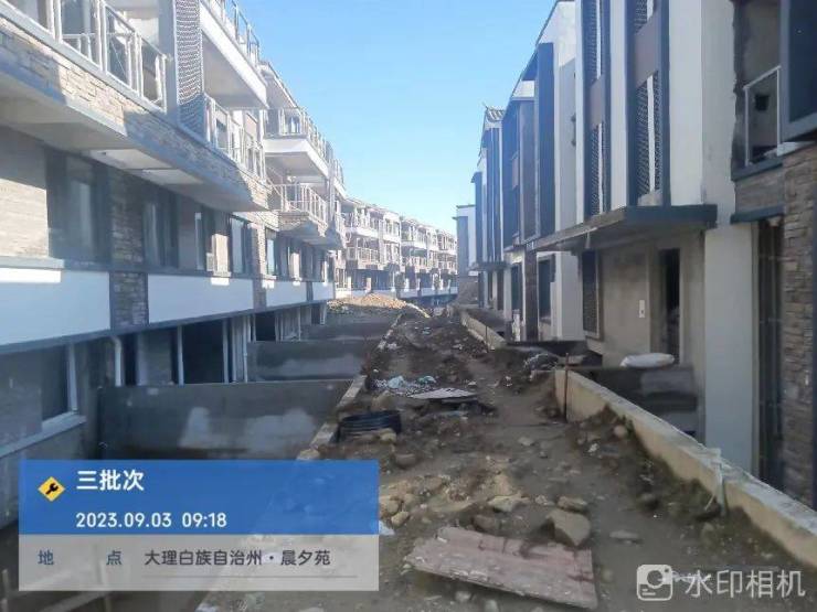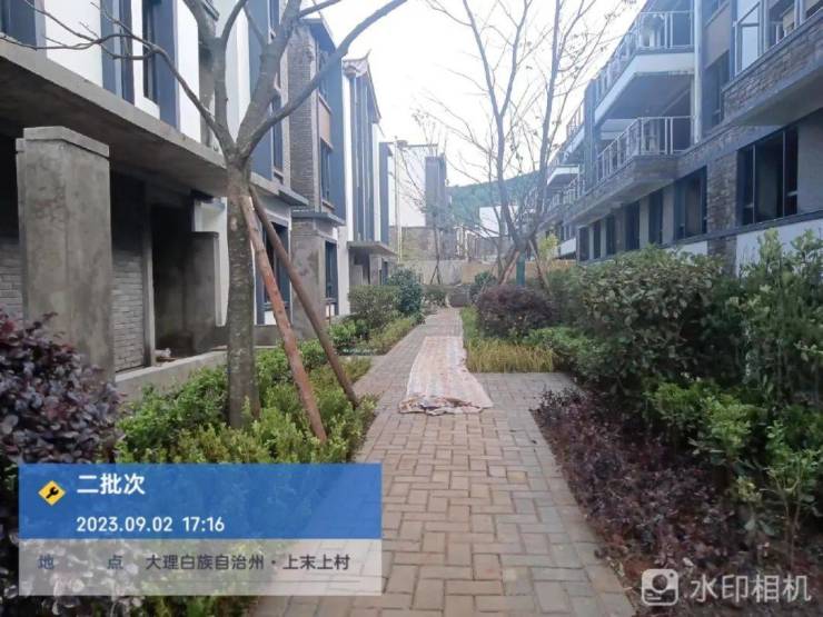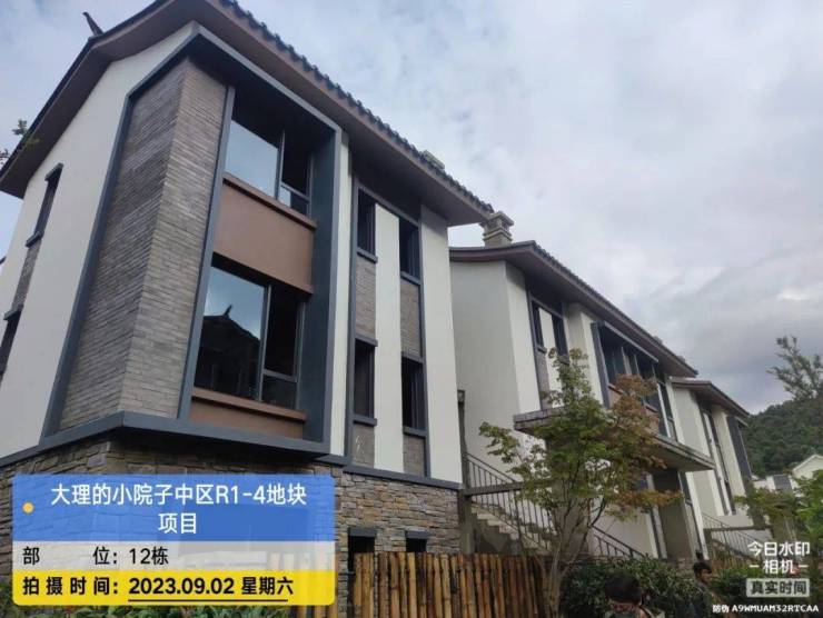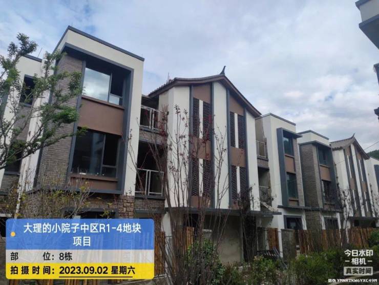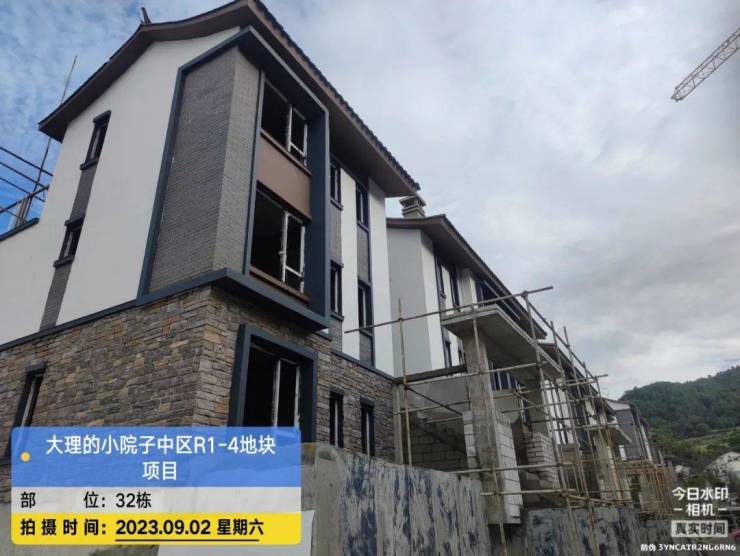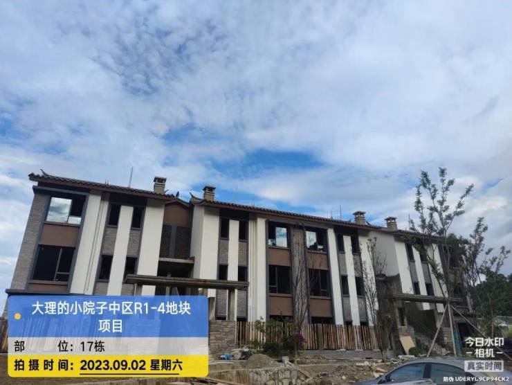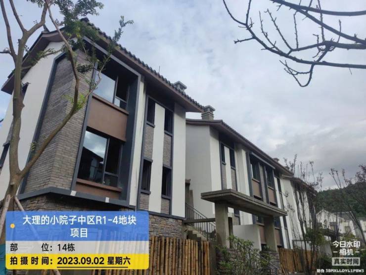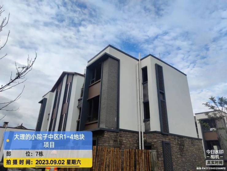 23栋砌体完成100%、内墙抹灰完成100%,外墙抹灰完成100%,屋面防水完成100%;外架拆除完成100%;窗安装完成100%;外墙保温砂浆百分100%、抗裂砂浆完成100%,腻子粉完成100%,涂料完成98%,文化石完成85%,小青砖完成85%;屋面瓦施工完成;庭院给排水管未安装,室内给排水、二配安装完成。