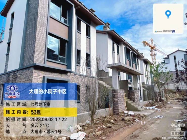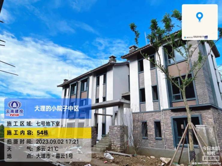 54栋砌体完成100%、内墙抹灰完成100%,外墙抹灰完成100%,屋面防水完成100%;外架拆除完成100%;室外抹灰收尾完成100%;室内防水施工完成100%,室内门窗收口完成100%;窗安装完成100%;外墙保温砂浆百分100%、抗裂砂浆完成100%,腻子粉完成100%,涂料完成98%;文化石完成85%,小青砖完成85%,屋面瓦施工完成;庭院给排水管未安装,室内排水、二配安装完成。绿化区域乔灌木栽种完成100%。