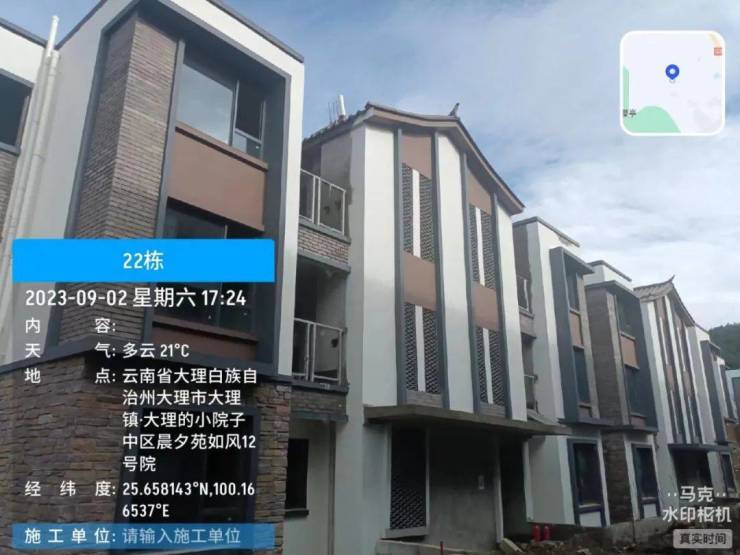 22栋砌体完成100%、内墙抹灰完成100%,外墙抹灰完成100%,屋面防水完成100%;外架拆除完成100%;室内防水施工完成90%;窗安装完成100%;外墙保温砂浆百分100%、抗裂砂浆完成100%,腻子粉完成100%,涂料完成98%;文化石完成85%,小青砖完成85%,屋面瓦施工完成;庭院给排水管未安装,室内给排水、二配安装完成。