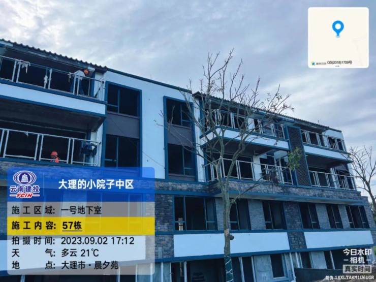 57栋砌体完成100%、内墙抹灰完成100%,外墙抹灰完成100%,屋面防水完成100%;室外抹灰收尾完成100%;室内防水施工完成20%,室内门窗收口完成50%;窗安装完成100%;外墙保温砂浆百分100%、抗裂砂浆完成100%,腻子完成100%,涂料完成100%,文化石完成85%,小青砖完成85%,屋面瓦施工完成;庭院给排水管未安装,室内给水安装完成。