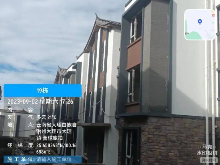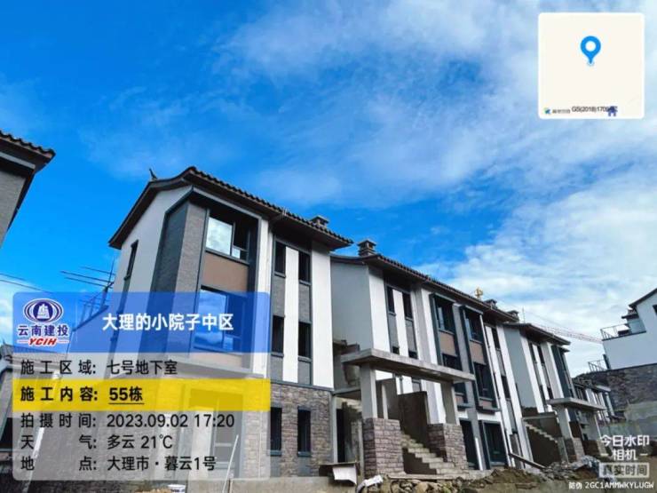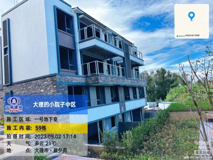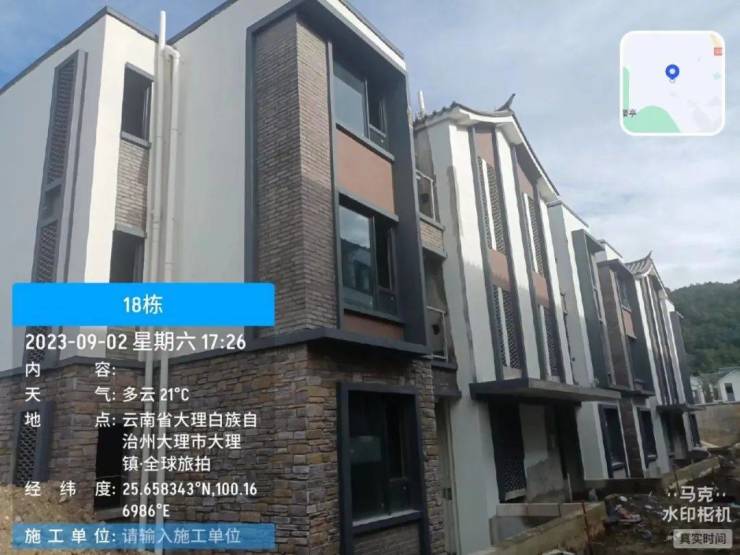19栋砌体完成100%、内墙抹灰完成100%,外墙抹灰完成100%,屋面防水完成100%;外架拆除完成100%;窗安装完成100%;外墙保温砂浆百分100%、抗裂砂浆完成100%,腻子粉完成100%,文化石完成85%,小青砖完成85%,涂料完成98%;屋面瓦施工完成;庭院给排水管未安装,室内给排水、二配安装完成。