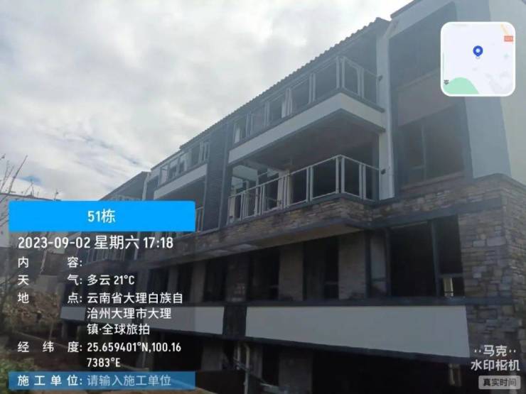 51栋砌体完成100%、内墙抹灰完成100%,外墙抹灰完成100%,屋面防水完成100%;外架拆除完成100%;窗安装完成100%;内墙门窗收口完成20%;外墙保温砂浆百分100%、抗裂砂浆完成100%,腻子粉完成100%,涂料完成100%;文化石完成85%,小青砖完成85%,屋面瓦施工完成;庭院给排水管未安装,室内给排水、二配安装完成。