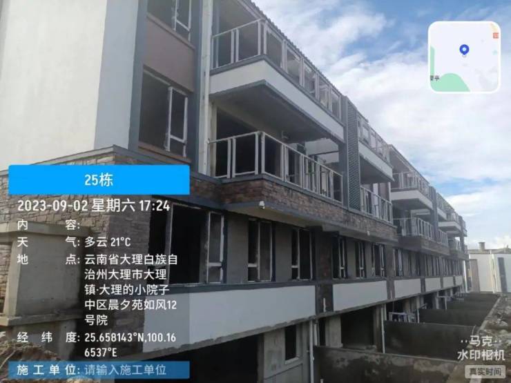 25栋砌体完成100%、内墙抹灰完成100%,外墙抹灰完成100%,屋面防水完成100%;外架拆除完成100%;窗安装完成100%;外墙保温砂浆百分100%、抗裂砂浆完成100%,腻子粉完成100%,涂料完成98%;文化石完成85%,小青砖完成85%,屋面瓦施工完成;庭院给排水管未安装,室内给排水、二配安装完成。