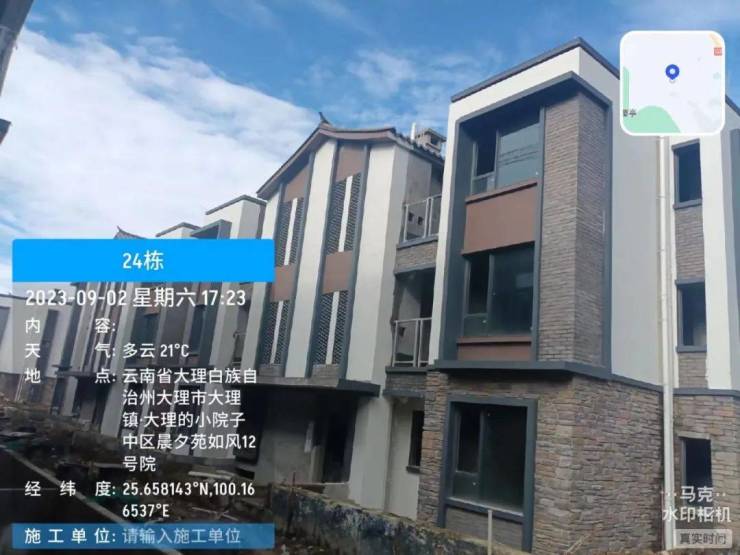 24栋砌体完成100%、内墙抹灰完成100%,外墙抹灰完成100%,屋面防水完成100%;外架拆除完成100%;室内防水施工完成90%;窗安装完成100%;外墙保温砂浆百分100%、抗裂砂浆完成100%,腻子粉完成100%,涂料完成98%;文化石完成85%,小青砖完成85%,屋面瓦施工完成;庭院给排水管未安装,室内给排水、二配安装完成。