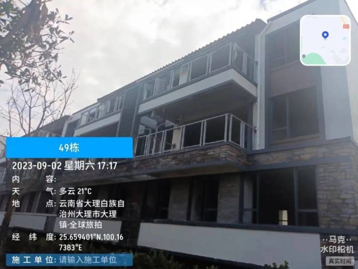 49栋砌体完成100%、内墙抹灰完成100%,外墙抹灰完成100%,屋面防水完成100%;外架拆除完成100%;窗安装完成100%;外墙保温砂浆百分100%、抗裂砂浆完成100%,腻子粉完成100%,涂料完成98%;文化石完成85%,小青砖完成85%,屋面瓦施工完成;庭院给排水管未安装,室内给排水、二配安装完成。
