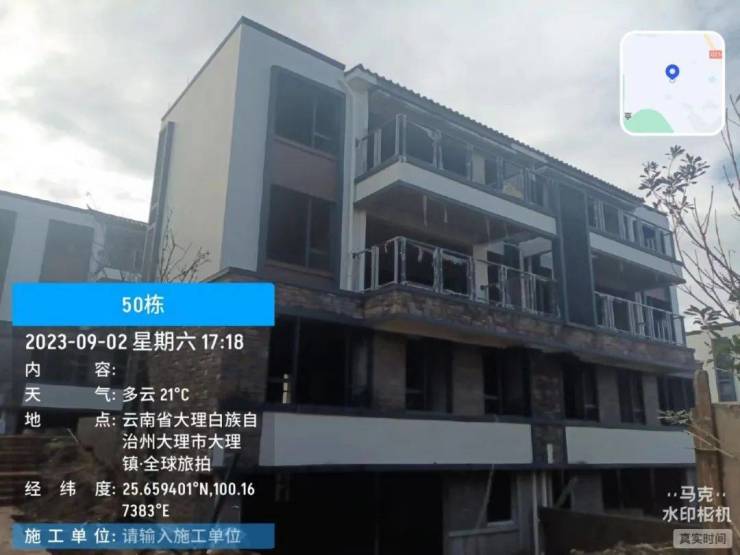 50栋砌体完成100%、内墙抹灰完成100%,外墙抹灰完成100%,屋面防水完成100%;外架拆除完成100%;窗安装完成100%;外墙保温砂浆百分100%、抗裂砂浆完成100%,腻子粉完成100%,涂料完成98%;文化石完成85%,小青砖完成85%,屋面瓦施工完成;室内给排水、二配安装完成。