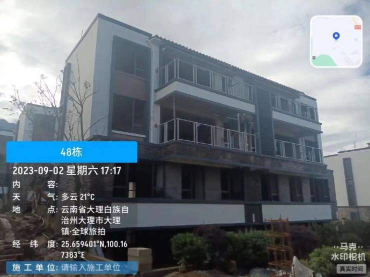 48栋砌体完成100%、内墙抹灰完成100%,外墙抹灰完成100%,屋面防水完成100%;外架拆除完成100%;窗安装完成100%;外墙保温砂浆百分100%、抗裂砂浆完成100%,腻子粉完成100%,涂料完成98%;文化石完成85%,小青砖完成85%,屋面瓦施工完成;庭院给排水管未安装,室内给排水、二配安装完成。