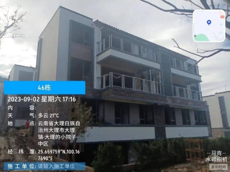 46栋砌体完成100%、内墙抹灰完成100%,外墙抹灰完成100%,屋面防水完成100%;外架拆除完成100%;窗安装完成100%;外墙保温砂浆百分100%、抗裂砂浆完成100%,腻子粉完成100%,涂料完成98%;文化石完成85%,小青砖完成85%,屋面瓦施工完成;室内给排水、二配安装完成。