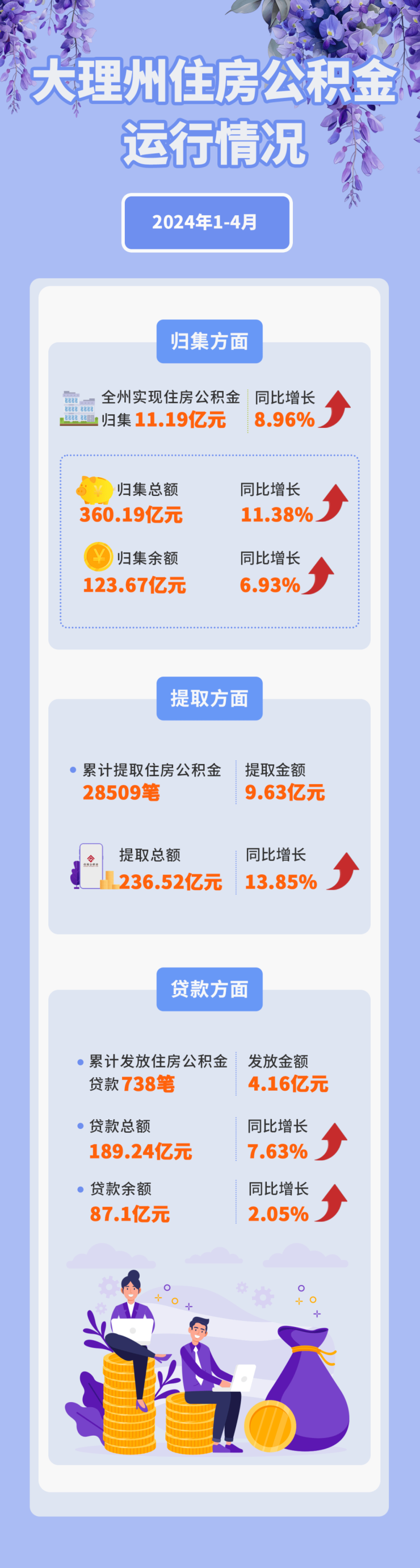 2024年1-4月大理州实现住房公积金归集11.19亿元,同比增长8.96%...