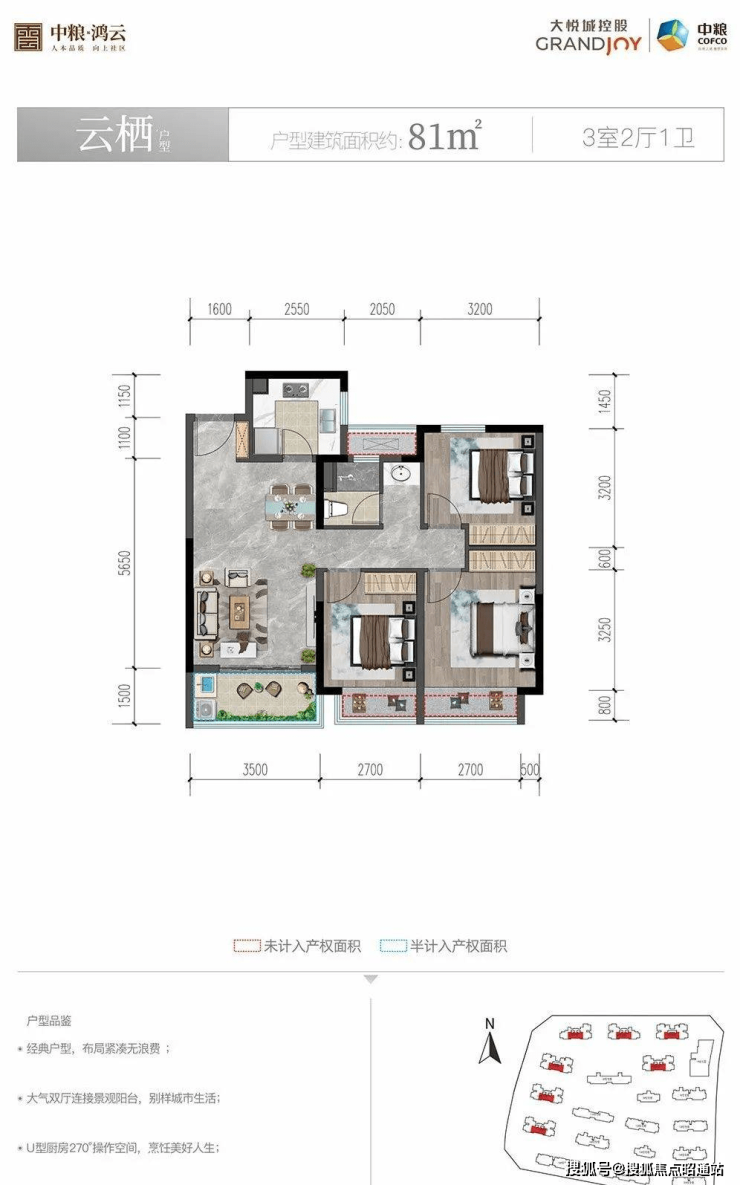 中粮鸿云在售户型涵盖三房至四房,建筑面积为81-120㎡适合刚需和改善客户群。