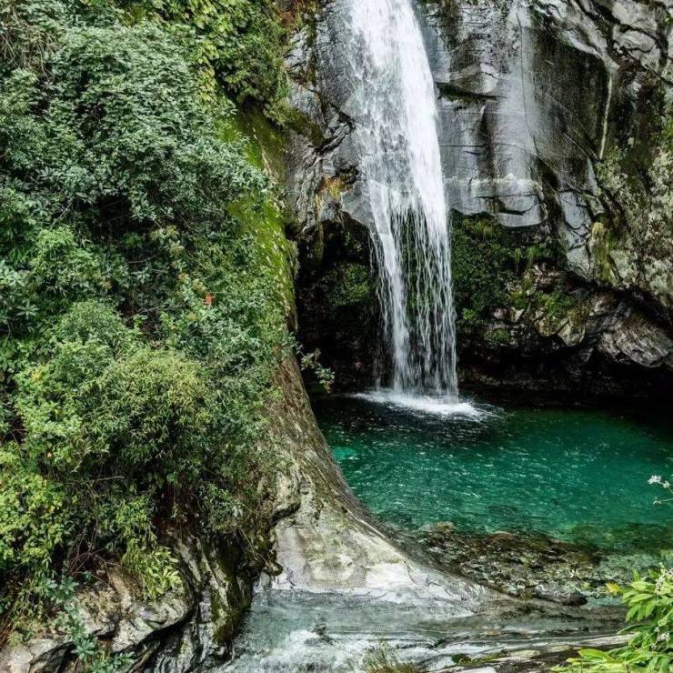 未见其形,先闻其声,巨大的水声从不远处传来,沿着声音寻找,这里便是七龙女池,藏匿于苍山之上的七个泉池,相传天山仙女在此洗澡而得名,七个泉池大小不一,形状不同,每一个泉池上方都会形成一个小型瀑布,且瀑布也都不尽相同。