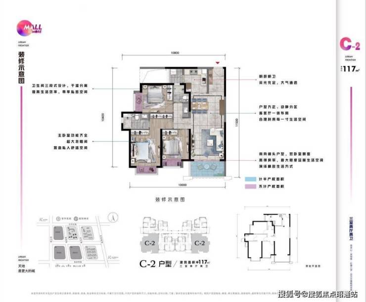 建面约117㎡ 三室/两厅/两卫