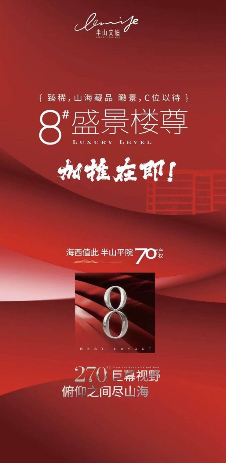 半山艾迪,8#盛景楼尊,加推在即!270°巨幕视野,俯仰之间尽山海!关注半山艾迪的朋友可前往售楼处现场看房,咨询房源信息请拨打电话400-156-0036