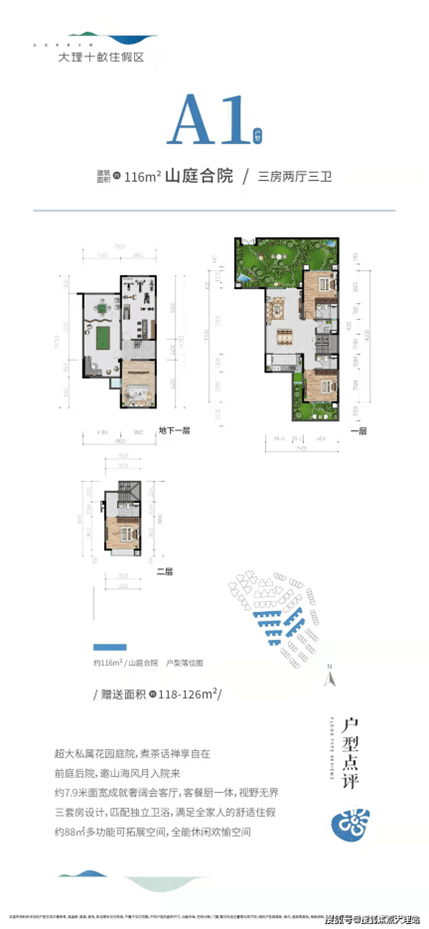 景观山海大境外拥约2000亩大理花园;内享10公里景观大道,4公里休闲步道揽月湖及揽月观星基地、欢乐田园、萌宠公园、以及77亩喔喔农场