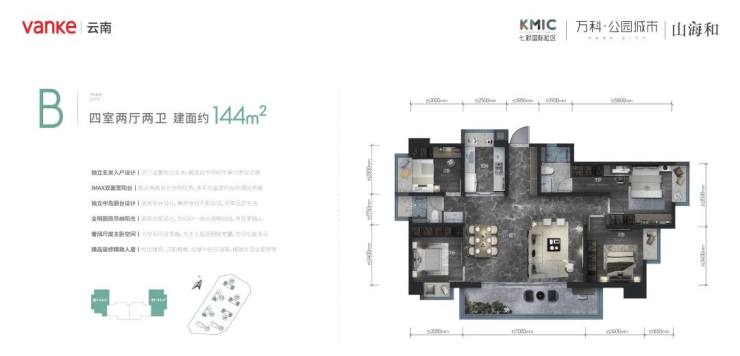 地块情况:项目共分为10个地块开发,其中4块住宅用地,6块商业用地。项目于2020年8月首开A4地块,现A4地块「云溪谷」(已交房)、A6地块「西山月」(一期已交房,新推二期105/144㎡产品在售),A5地块「山海和」(190㎡产品在售)、A7地块「山河万里」(144㎡产品在售)。