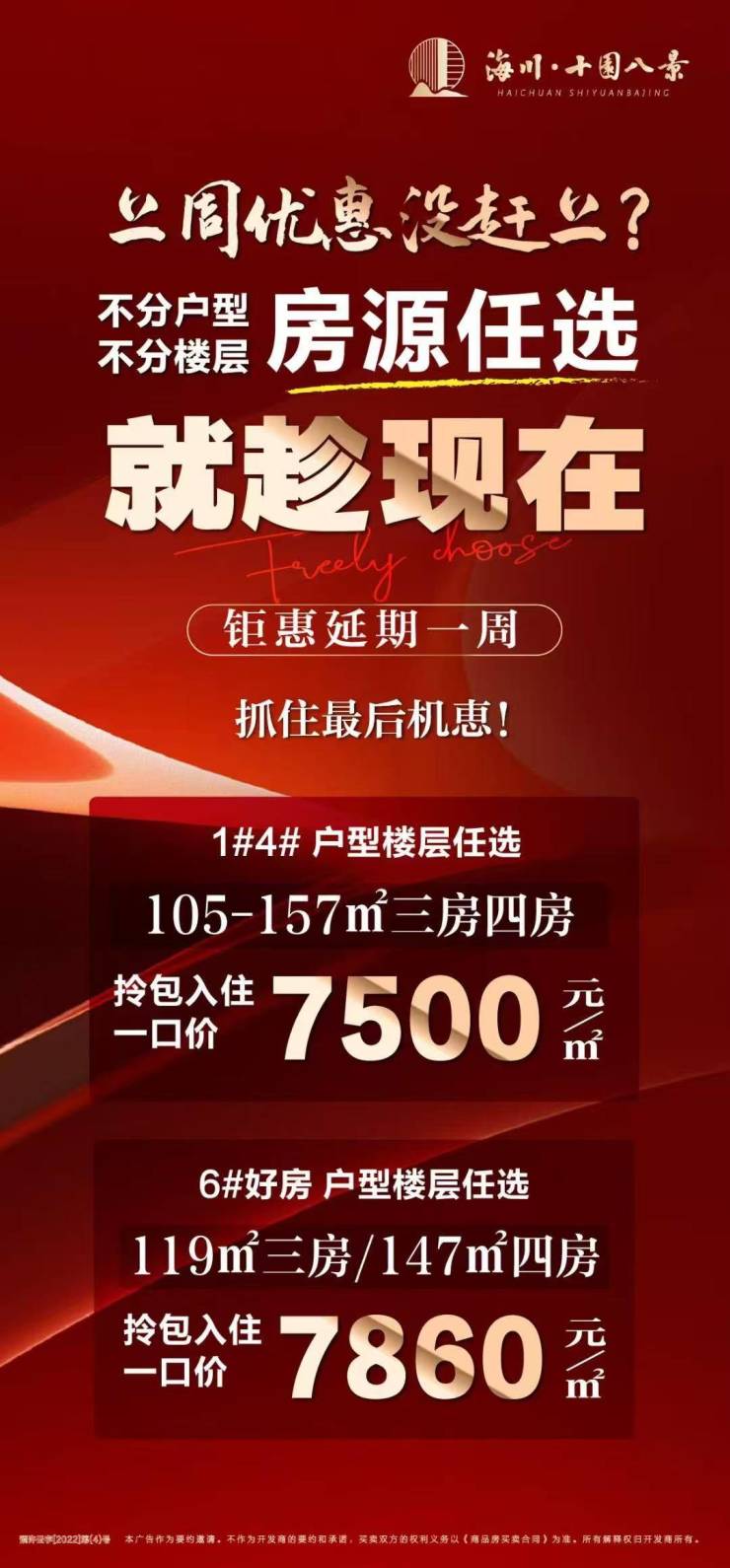 海川·十园八景,一口价房源推荐,拎包入住!关注海川·十园八景的朋友可前往售楼处现场看房,咨询房源信息请拨打电话400-156-0036 转 426610!