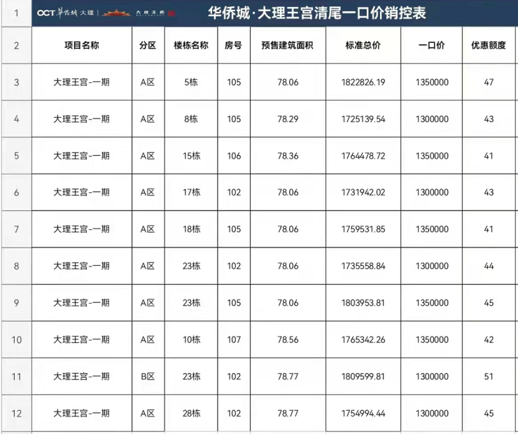 华侨城·大理王宫 清盘特惠 一口价房源 限时发售中
