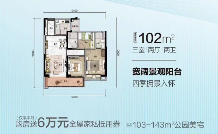 建面约102㎡/三室两厅两卫
