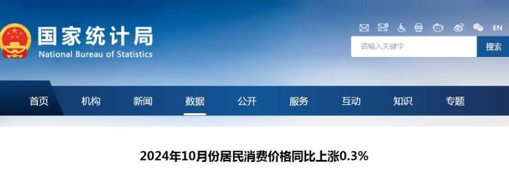 2024年10月份全国居民消费价格同比上涨0.3%