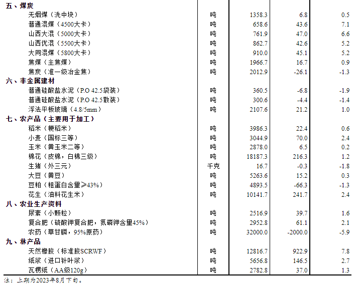 2023年9月上旬流通领域重要生产资料市场价格变动情况