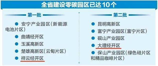 我省第二批5个零碳园区包括昆明高新区、富宁产业园区(富宁片区)、砚山产业园区、大理经开区、保山产业园区(绿色硅片区和精品咖啡片区),功能定位各有不同。