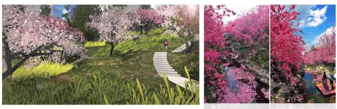 精心打造具有北欧质感的格林盛景(规划中);借地势高差匠造樱花溪谷景观走廊