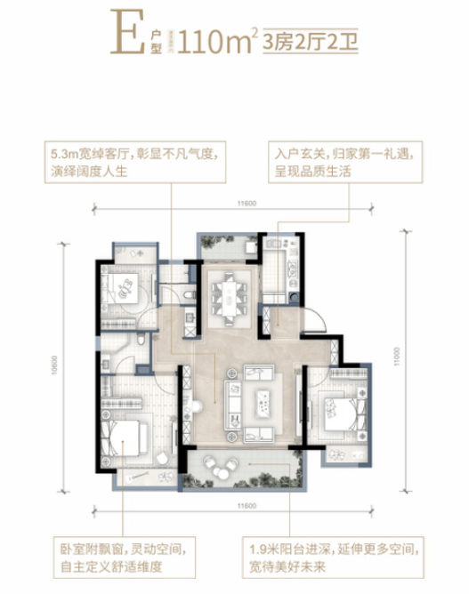 既能享受空港的配套,又能享受享受生活,靠山面水把山湖阳光装进家的户型