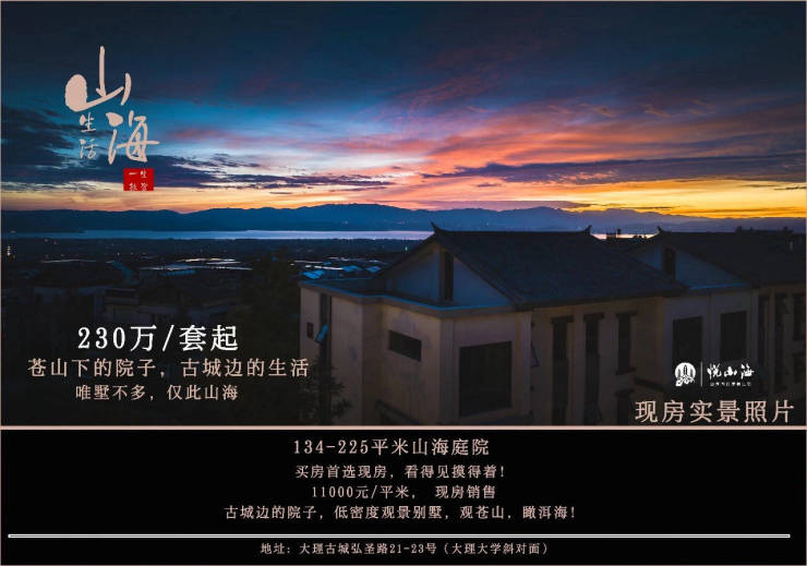 大理·悦山海现房庭院少量院子在售,建筑面积134-225平米,价格230万/套起。