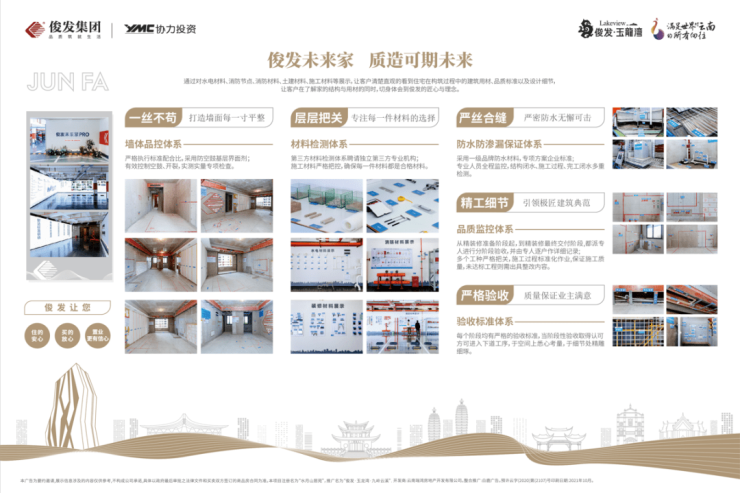 玉龙湾作为品质生活的缔造者,为努力让居住梦想与前瞻理念碰撞出智慧的火花,创造出更多种生活的可能性。为让客户和业主清楚看到“家”在建设过程中的全细节,项目以“俊发未来家——透明工厂”将项目建设全过程“透明”,让家人们能直观看到、摸到、所见即所得,以真实鉴证舒心。