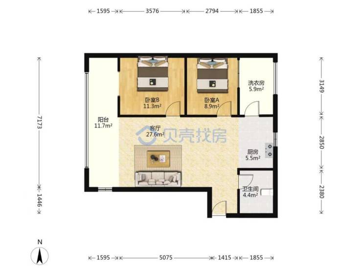 房型:2室2厅