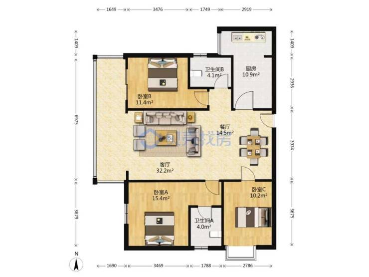 房型:3室2厅