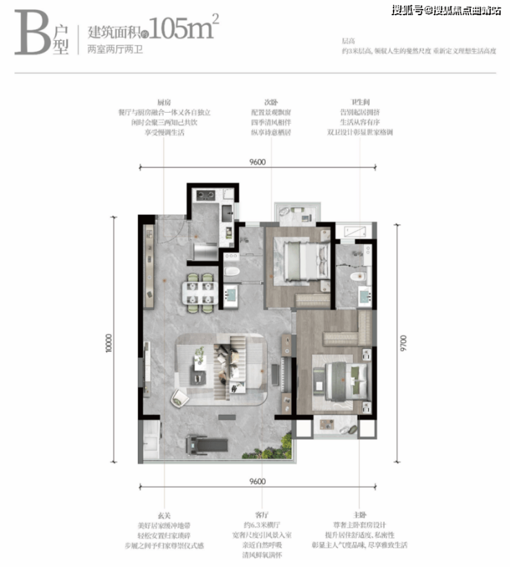 建筑面积约105㎡ B户型示意