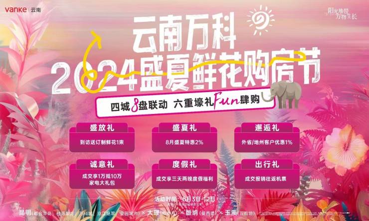 云南万科2024盛夏鲜花购房节,四城8盘联动,六重壕礼FUN肆购!关注万科·大理·拾叁月的朋友可前往售楼处现场看房,咨询房源信息请拨打电话4001560036
