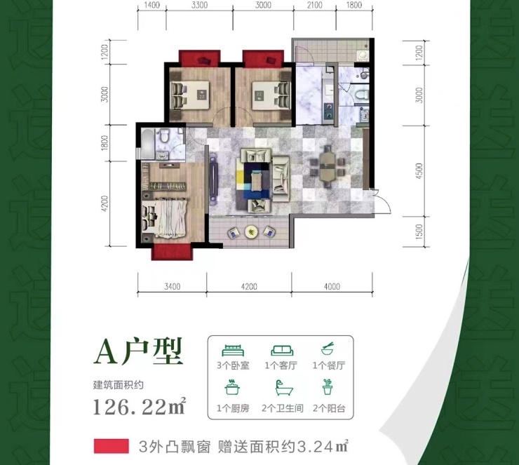 据搜狐焦点大理站获悉,大理阳光满園,建面约126.22㎡A户型,赠送面积约3.24㎡,单价8499元/㎡起,实际单价约8286元/㎡起,优惠约达213-232元/㎡!