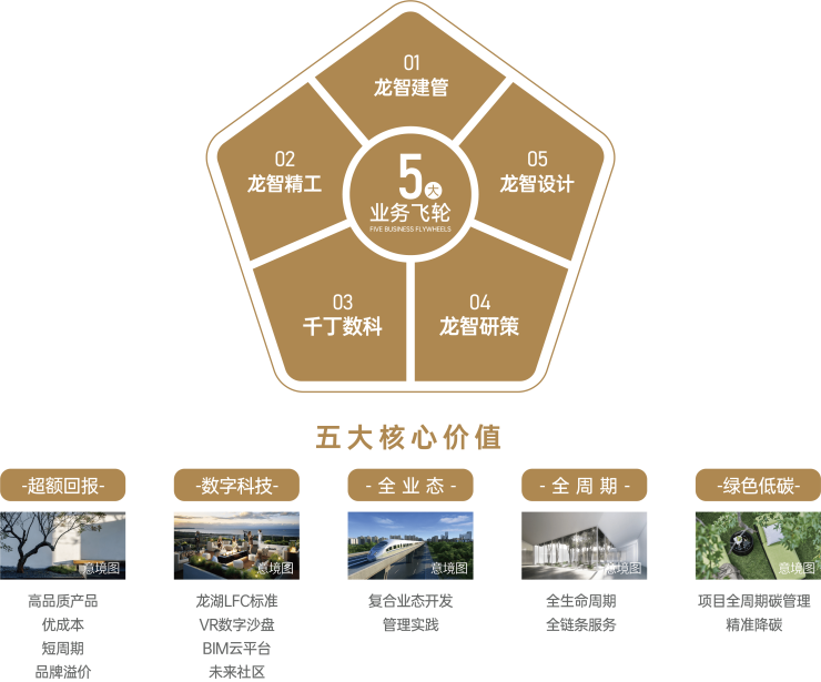 龙湖龙智造作为龙湖旗下的智慧营造品牌,为项目提供建造管理与营销服务,将按照龙湖产品、工艺标准开发建造,承袭龙湖的产品力,智造未来城市,创造美好生活。