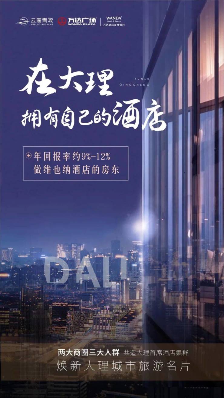 云麓青城·万达广场,紧靠波罗江、经开区管委会和新建大理高铁北站,西侧满江路、东侧红山路,是满江两大主干道。项目距离大理机场5.5公里,开车只需10分钟;项目距离大理新建高铁北站仅有0.7公里,步行只需5分钟。云麓青城·万达广场,项目二期推出的酒店产品,联合中国TOP1.锦江集团打造多类型的商务型酒店,23层-32层为锦江维也纳酒店,建面约37-79㎡酒店集群产品,总价约37万起,预计年收益可达4-5万元。更多房源信息可咨询营销中心销售,联系电话400-156-0036 转 414316!