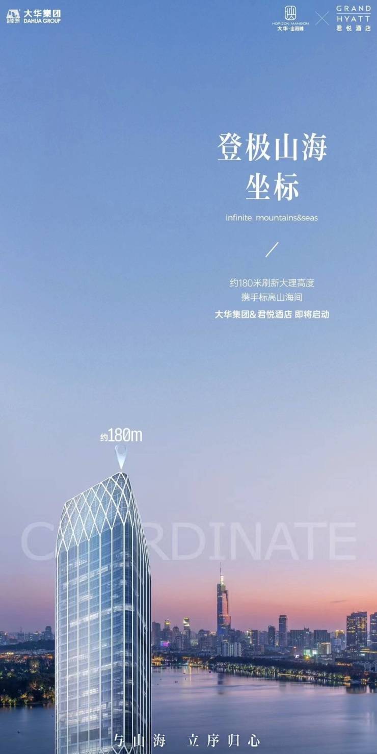 大华·山海映,项目由大华集团开发,坐落于下关城市核心地段,与大理州博物馆书香文脉为邻,坐享西洱河畔繁华璀璨风光,尽览苍山洱海大美景观。揽超五星级君悦酒店(规划中)重磅配套,享高奢装修品质与国家一级资质大华物业尽心服务。项目以兴盛路、泰安路、洱河南路、洱河北路、宾川路形成了三横两纵的交通网络体系,在下关核芯,串联大理州全域。