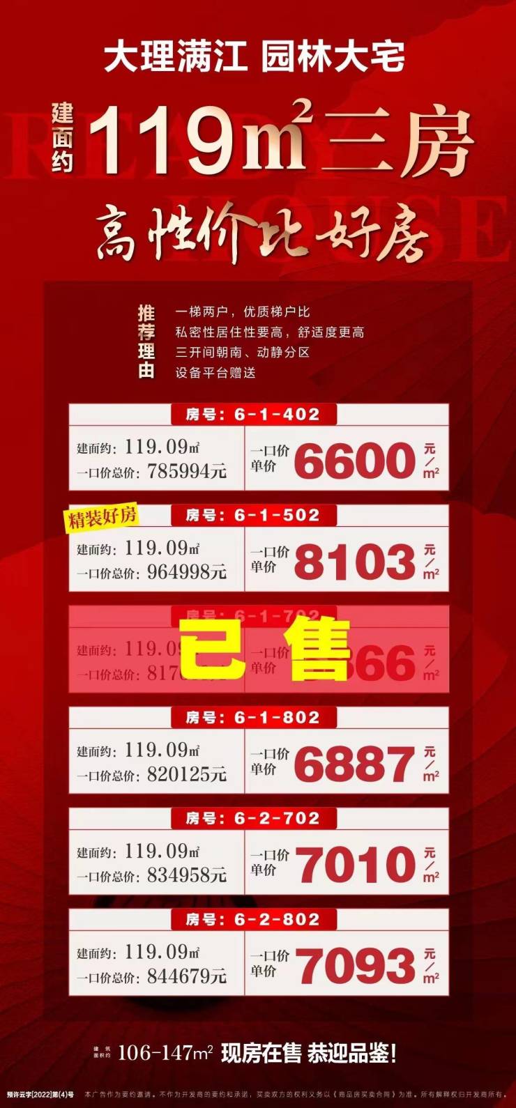 海川·十园八景,大理满江园林大宅,建面约119㎡高性价比三房,一口价房源推荐!关注海川·十园八景的朋友可前往售楼处现场看房,咨询房源信息请拨打电话400-156-0036 转 426610!