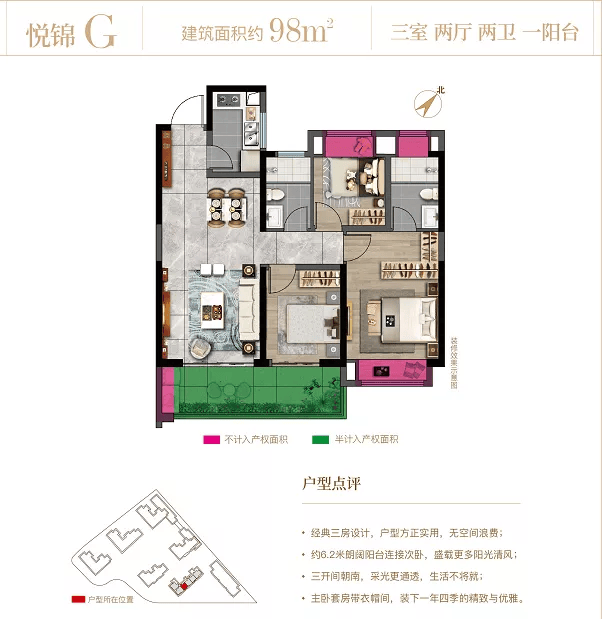 项目从62-123平高层,别墅从95-144平应有尽有,可以满足不同阶段的客户需求。户型方正、南北通透,众多户型均设计宽景阳台、次卧飘窗,最大程度保证采光和日照。项目大部分楼栋均采用局部架空设计,拥有独立的入户大堂,地面及部分墙面采取大理石铺贴,彰显尊贵气派,让您的归家之路仪式感十足