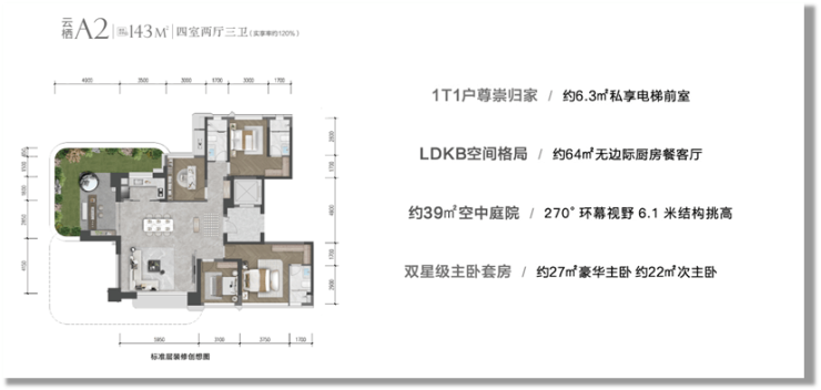建面约143-199㎡第四代浮岛大平层