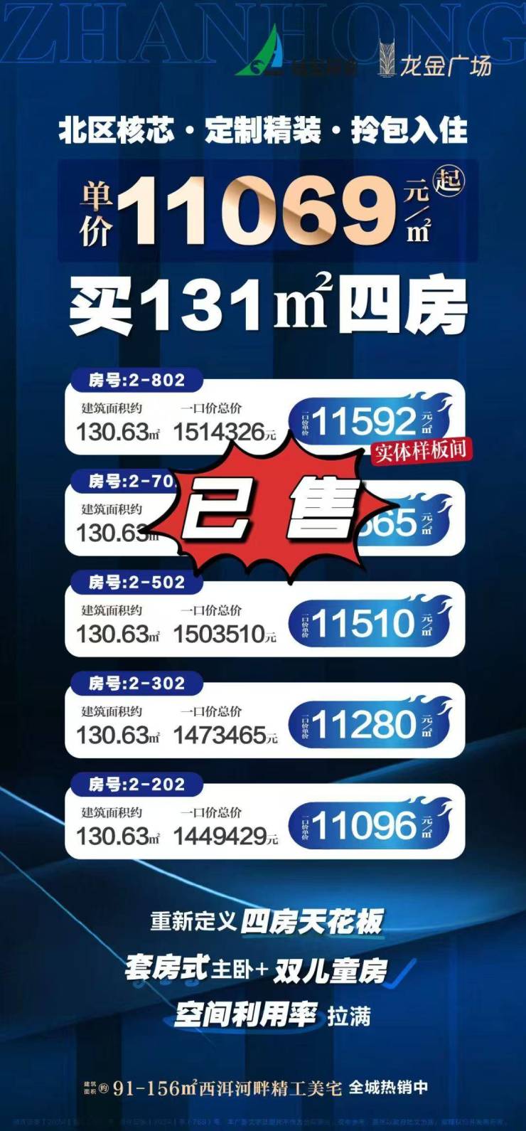 展宏·龙金广场,建面约91-156㎡西洱河畔精工美宅,全城热销中!北区核芯,定制精装,拎包入住!关注展宏·龙金广场的朋友可前往售楼处现场看房,咨询房源信息请拨打电话4001560036