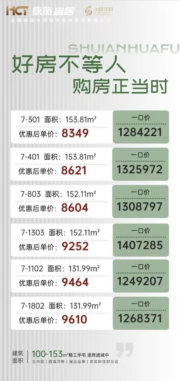 大理水岸华府 建面约100-153㎡精工华宅 逐席递减中