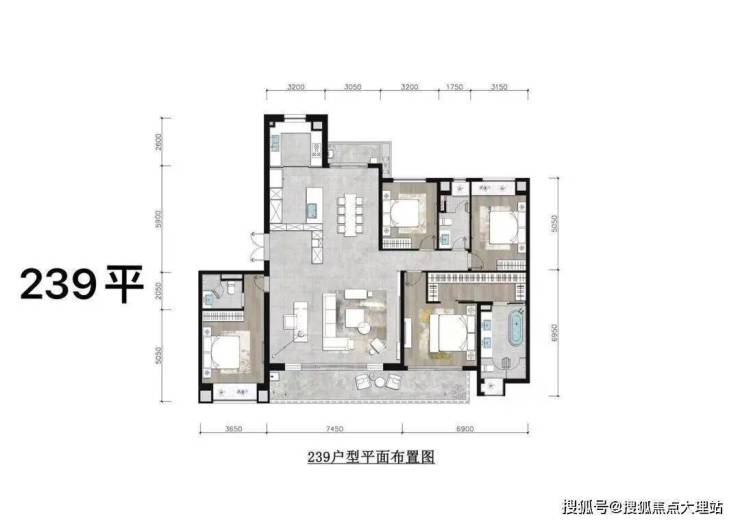 ▲锦粼天序205㎡户型图,205㎡户型,4房2厅3卫设计,多开间朝南;