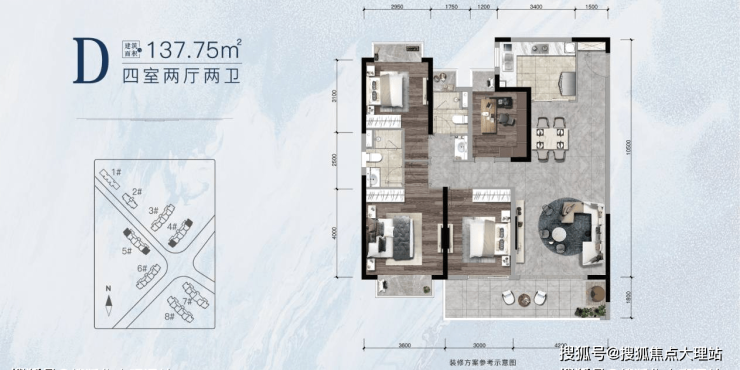 在售面积:建面约99.52-137.75㎡户型
