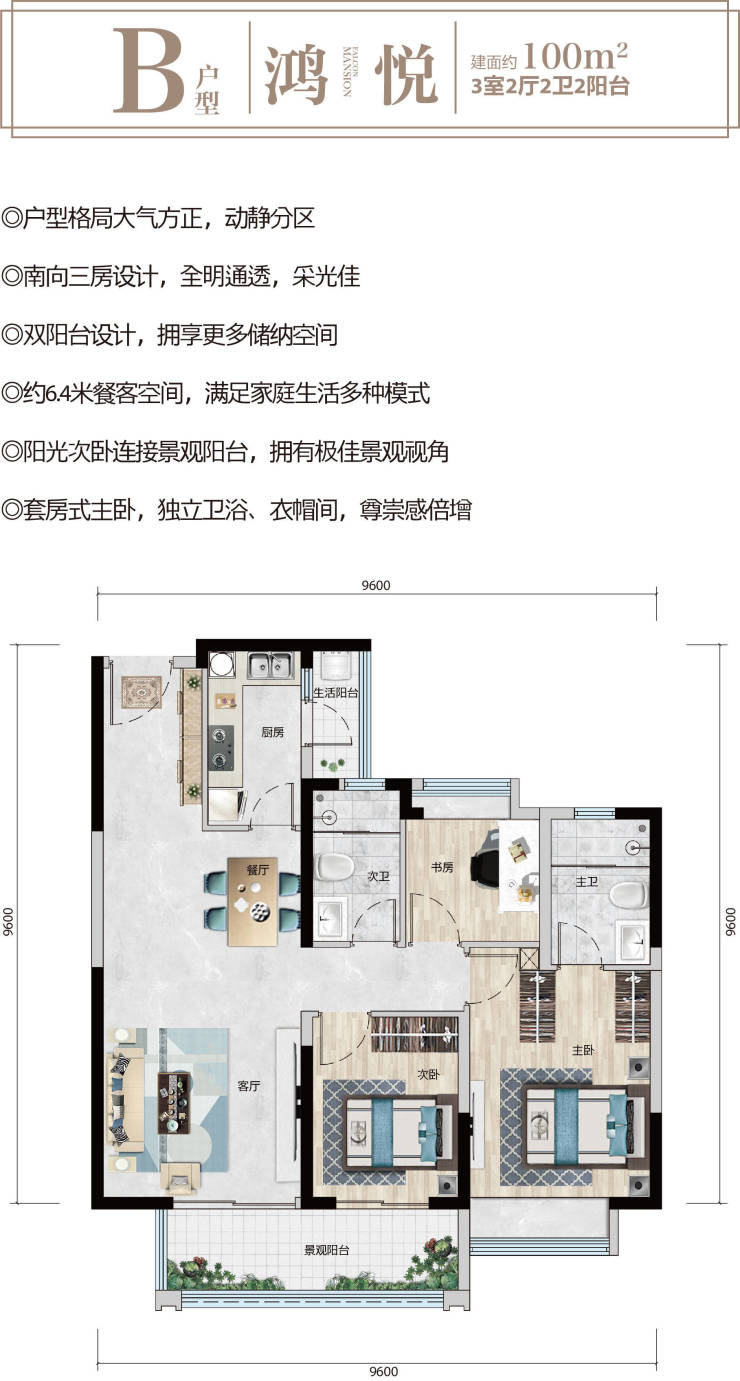 紫悦府打破传统大宅的空间尺度,增添品质生活的无限可能。从建筑设计上来看:2梯4户、2梯5户的南北通透纯板式设计,270°天幕观景阳台,采光、视野俱佳;奢阔双入户大堂,超高挑高,超强空间尺度感,赋予您“出入皆礼遇”的五星级归家体验。