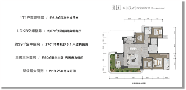 建面约143-199㎡第四代浮岛大平层