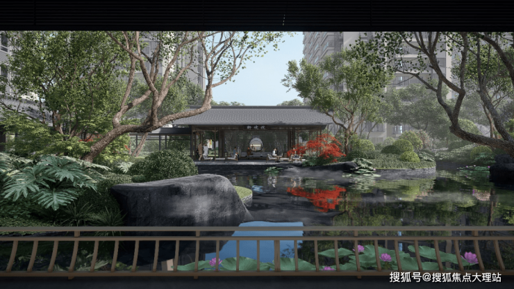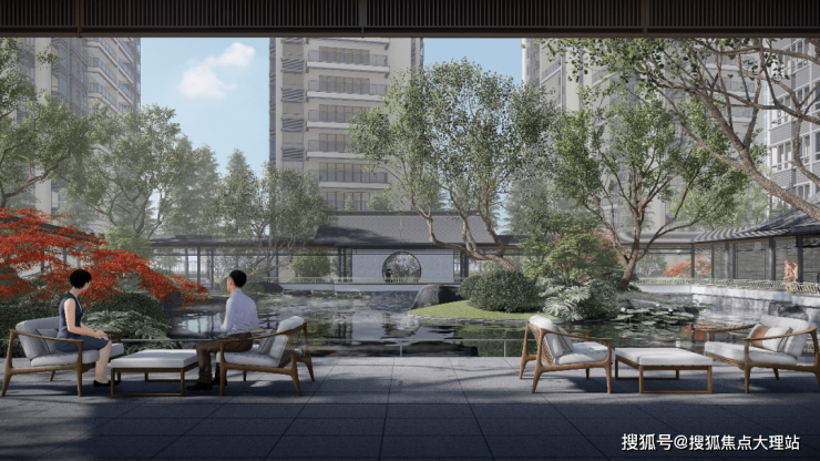 “四进”【揽境轩】,以“揽滇池月夜场景、营滇池山水画卷”的主题场景,将“山、水、谷”三者融入中庭景观,形成“对望、回望、登高望远、洄游”的游园体系,增加“四季看景,季季不同”的中式园林风景。