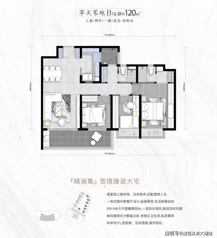全新120㎡瞰景三房,将客厅与三卧室全南向设计,居住舒适感的极致演绎,阔景阳台与卧室相连,打造全屋流通的空气自然循环体系,饱览滇海景观的同时,还可以为生活意境开辟无限可能。
