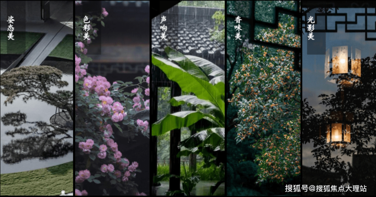植物设计遵循传统中式园林植物配置手法,强调园林意境五美属性: